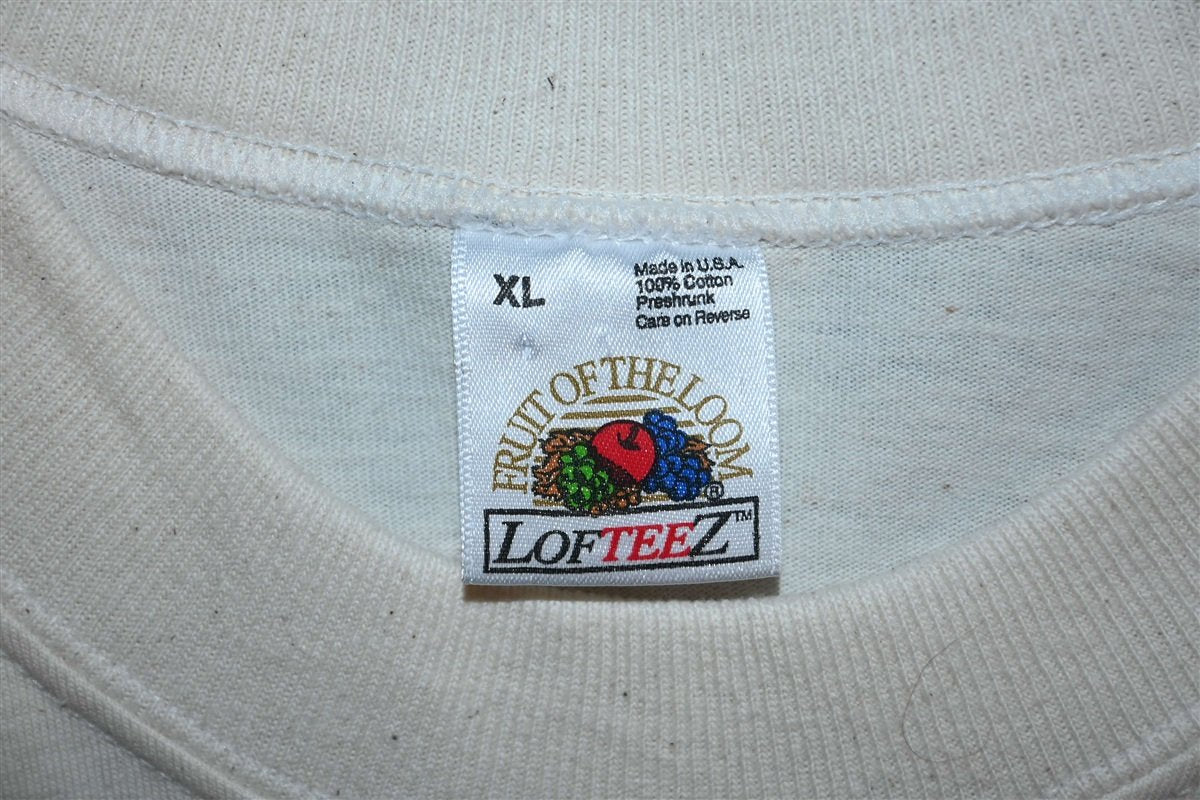 Fits like a modern unisex adult Extra Large. This shirt is off white in color.