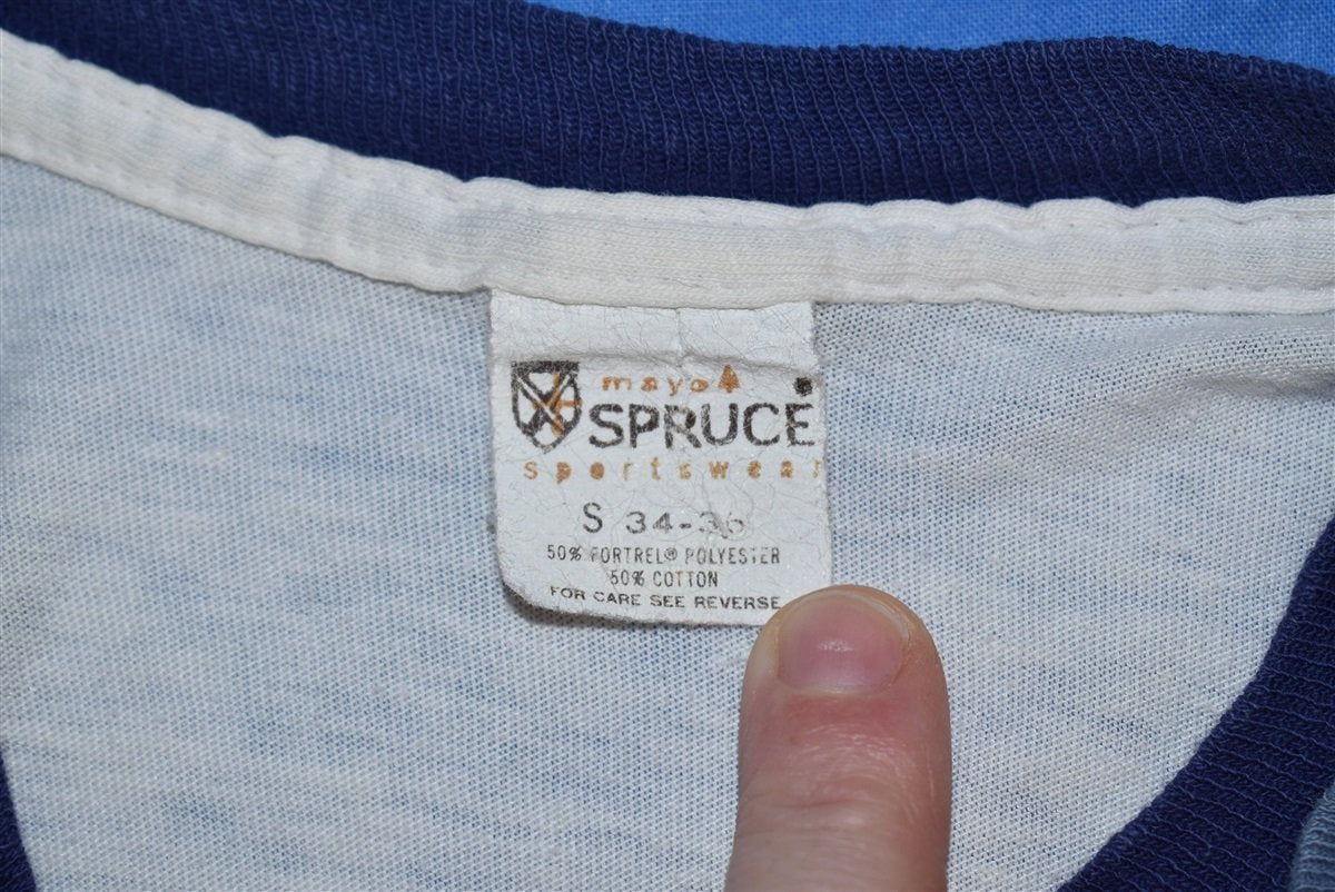 Tag says small but this shirt fits like a modern unisex adult extra small. Paint spots, other small spots, fading, see pics.