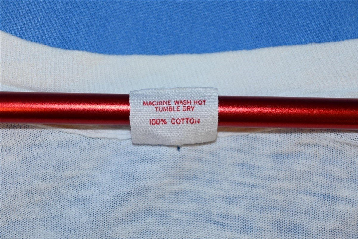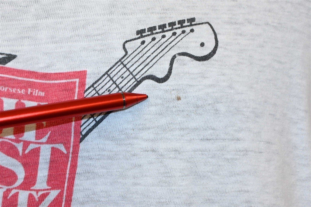This amazing vintage find is an original promotional t-shirt advertising Martin Scorsese's 1978 film, The Last Waltz. The movie is considered one of the greatest documentary concert films ever made, and it centers around a farewell concert staged by the beloved Canadian-American rock band, The Band.