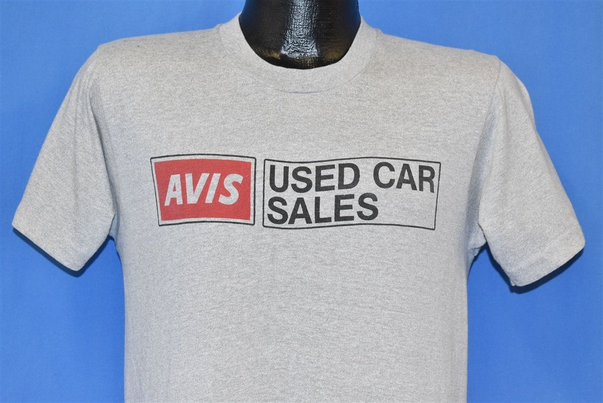 This promo tee was specially made for Avis Used Car Sales circa 1980s. It's held up great after all this time and ready for many more years of love and wear. Features the iconic Avis logo, soft cotton blend, and a soothing heathered gray- very comfy and easy on the eyes.