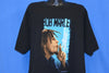 This vintage tee pays homage to the prolific reggae musician and dedicated Rastafarian, Bob Marley. It's a 1990s original loaded with big eye-catching graphics, one hundred percent cotton, and double sided print.