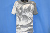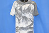 This awesome all over print t-shirt promotes the blockbuster movie Jurassic Park released in 1993. The movie was directed Steven Spielberg and based off the novel of the same name written by Michael Crichton, who also helped to write the screenplay alongside David Koepp. Before the book was even published, several studios put in bids for film rights, with Spielberg and Universal Studios acquiring them for $1.5 million.