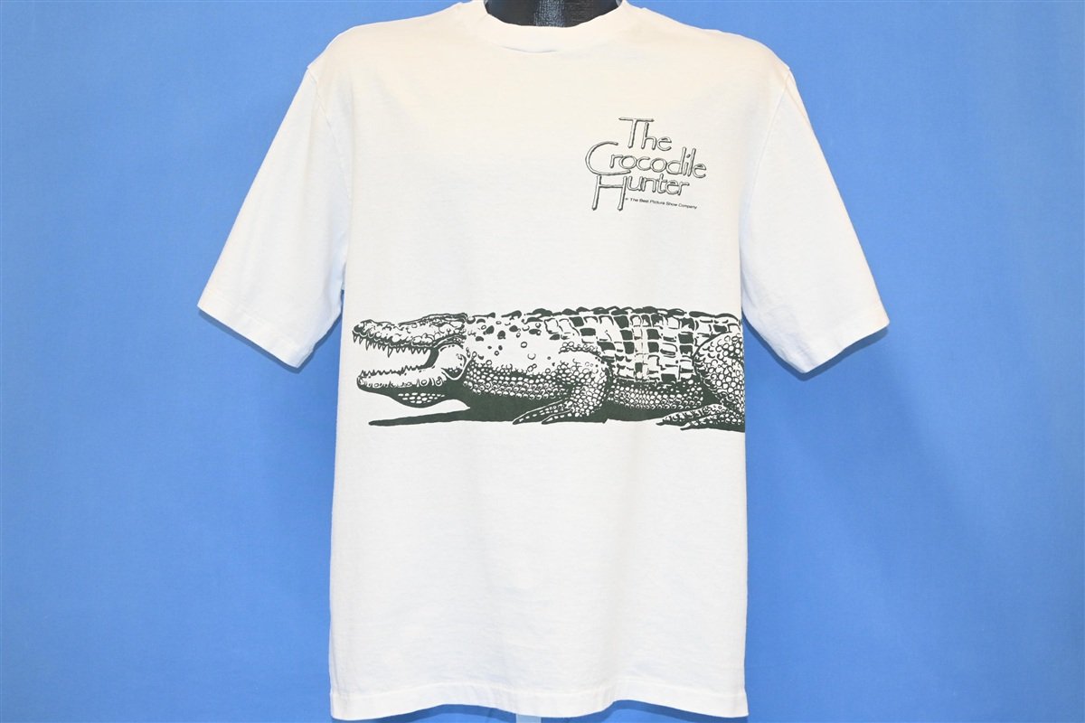 This awesome wraparound tee celebrates a late, great icon in the world of wildlife conservation, Steve Irwin. This shirt is a promotional tee for The Crocodile Hunter, the documentary television series that brought Irwin international fame. The show first aired in Irwin's home country of Australia in 1992, and it later gained widespread recognition through Animal Planet, where it proved to be the network's highest-rated series.