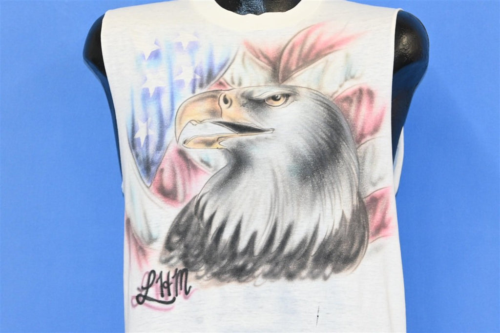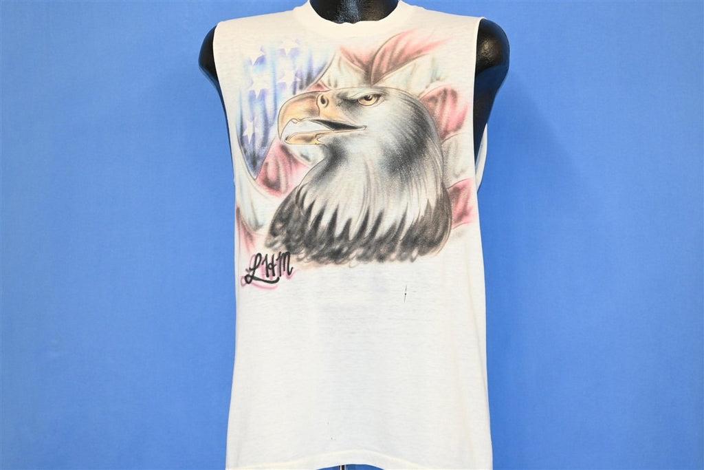 80s Airbrushed Bald Eagle USA Flag Sleeveless t-shirt Medium