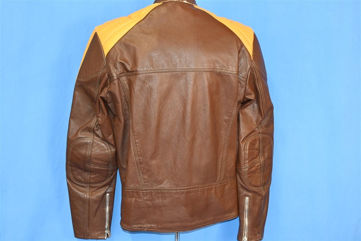 80s Brown Rocky Leather Motorcycle Racer Jacket Large