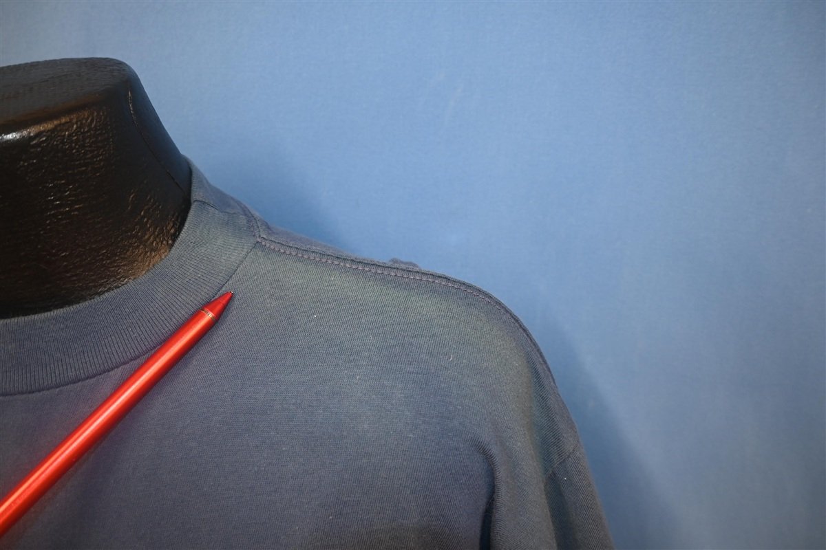 Fits like a modern unisex adult Extra Large. There is hanger fade on the shoulders, see pics.