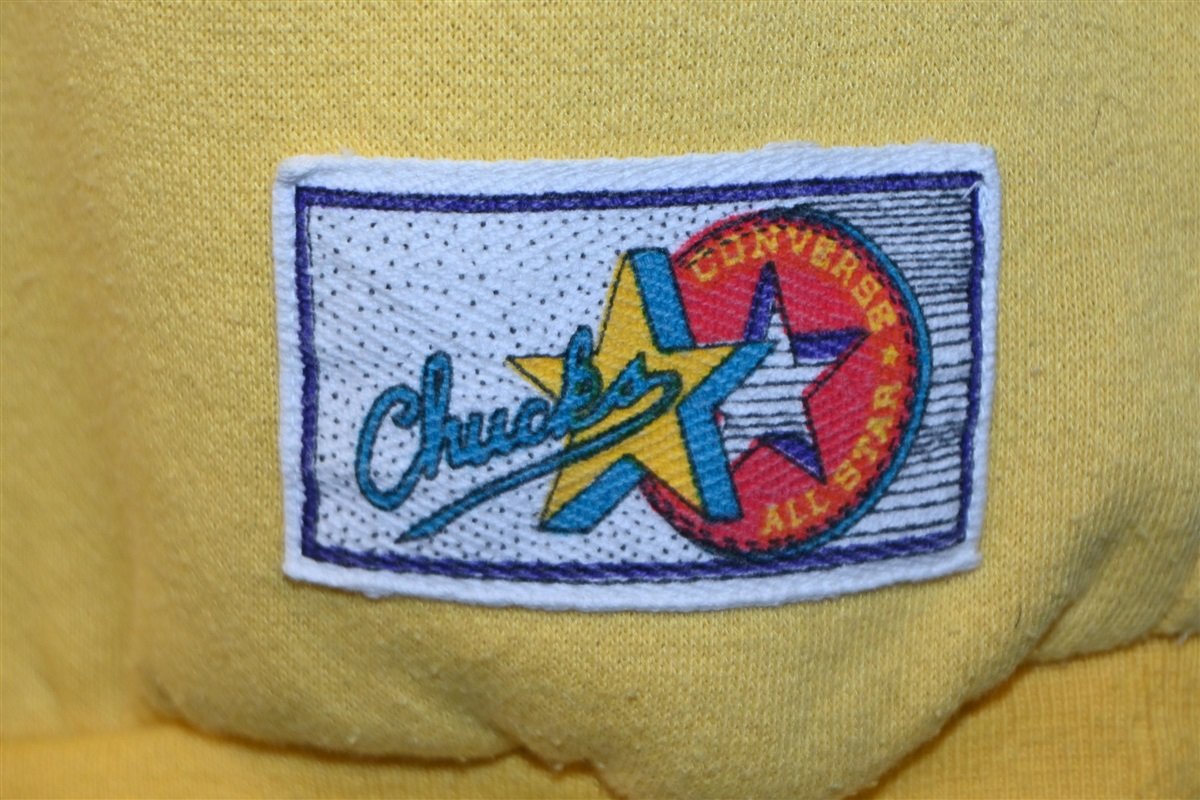 This cool Converse sweatshirt is from the 80s! This garment features Converse's most iconic shoe, the Chuck Taylor All Star, or Chucks. Chuck Taylors were designed and created for Charles Taylor who was a basketball player during the early 20th century.