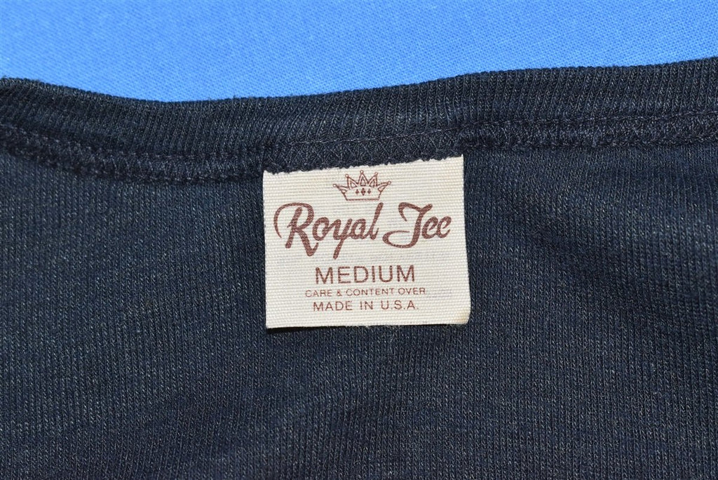 This soft and stretchy rib knit tee shows off the logo for a business called Earth Angel, which used be found in Chicago during the 1980s. According to some old promotional matchbooks, Earth Angel was located at 60 East Delaware Place, and its tag line described it as "just a place in time". Based off of this and the business' name, which matches the hit doo-wop song by The Penguins, Earth Angel was likely a 1950s inspired bar or restaurant.