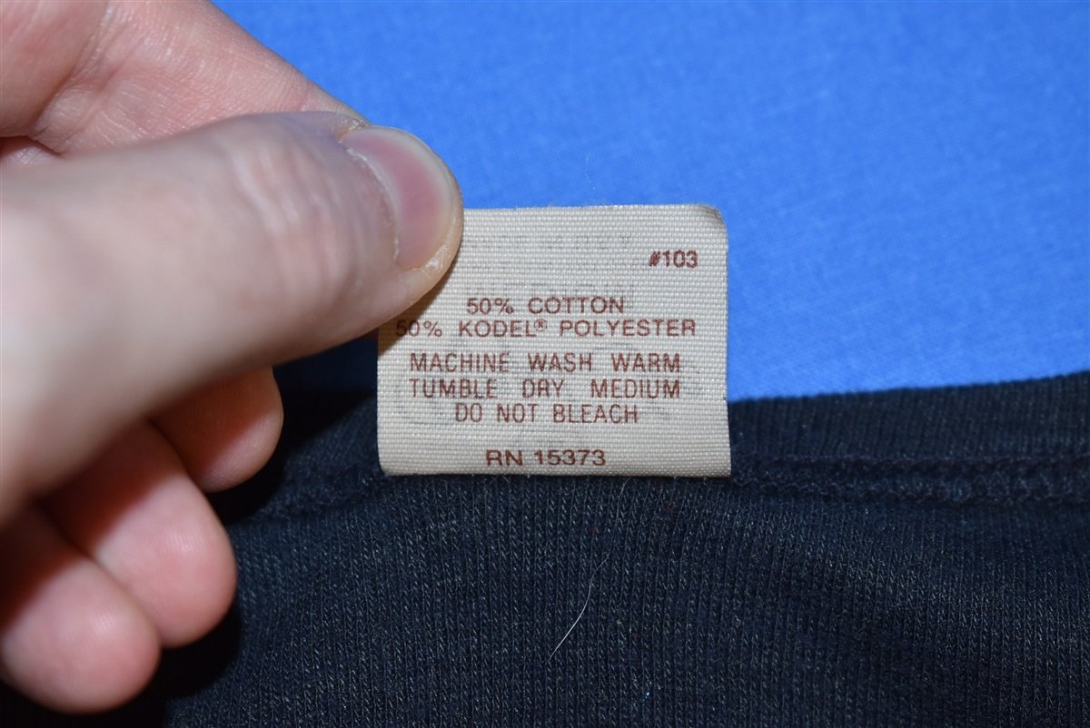 The tag says medium but this shirt fits like a modern adult women's extra small. This shirt is rib knit and stretchy.