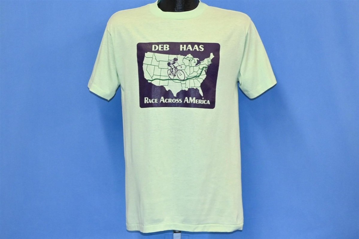 80s Race Across America Deb Haas Cyclist Green t-shirt Medium
