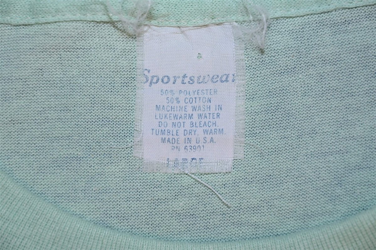 This green shirt was printed to support Deb Haas as she competed in Race Across America, a yearly coast to coast ultra-distance road cycling race. Some cyclists have finished the route from California to New Jersey in less than 9 days, unfortunately in '86 Deb Haas had to withdraw in Liberty, Tennessee. Starting in Huntington Beach, she cycled 2,139 miles and impressed many as a first year competitor!