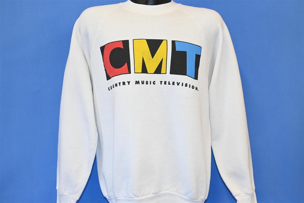 This sweet vintage sweatshirt bears the logo for CMT, or Country Music Television. This premium television network first went on air in 1983, and it was initially designed to showcase country music videos. This made CMT the first nationally available channel dedicated to country music. Its programming also included concerts, specials, and biographies centered on various country stars. It later also began airing sitcoms, lifestyle shows, and reality series that included World's Strictest Parents, Dallas Cowboys Cheerleaders: Making the Team, Dog and Beth: On the Hunt, and Steve Austin's Broken Skull Challenge.