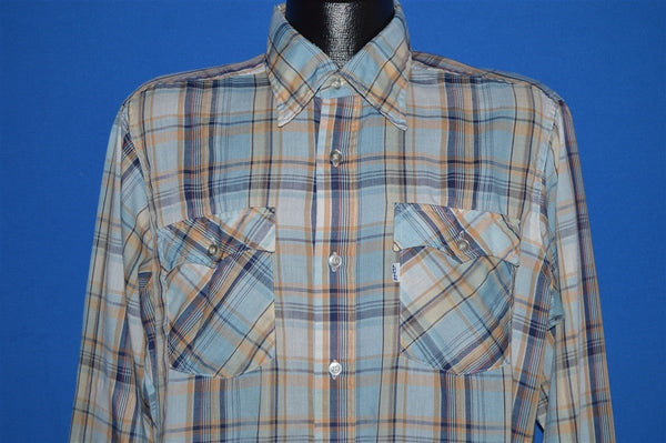 80s Levi's Brown Blue Plaid Shirt Large