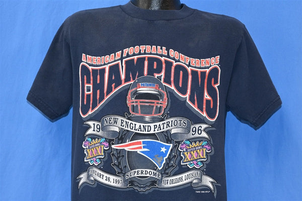 This sweet football sweatshirt was made to rep the New England Patriots. This shirt was made in the 90s, just before head coach Bill Belichick and quarterback Tom Brady shaped the team into one of the most dominant NFL franchises of the 2000s. The Patriots made several playoff appearances in the 90s, and they even earned a trip to Super Bowl XXXI, although they lost the game to the Green Bay Packers. Still, the team put up a hearty fight under the leadership of Hall of Fame coach, Bill Parcells.