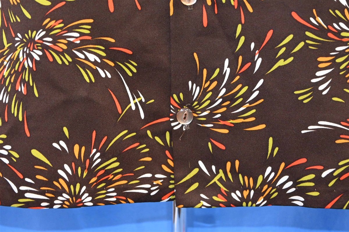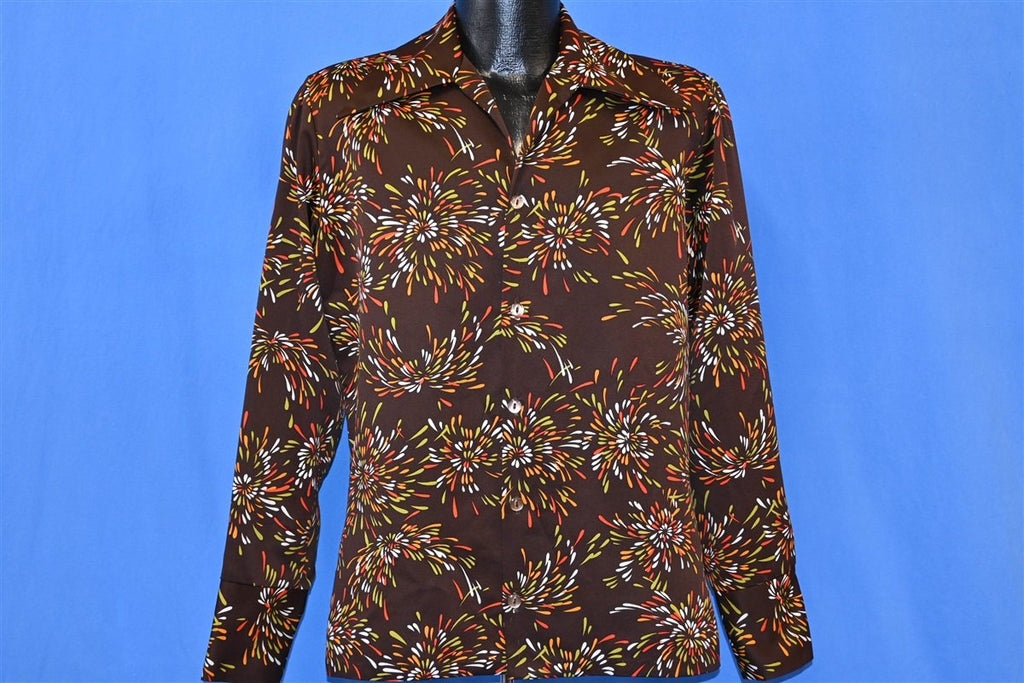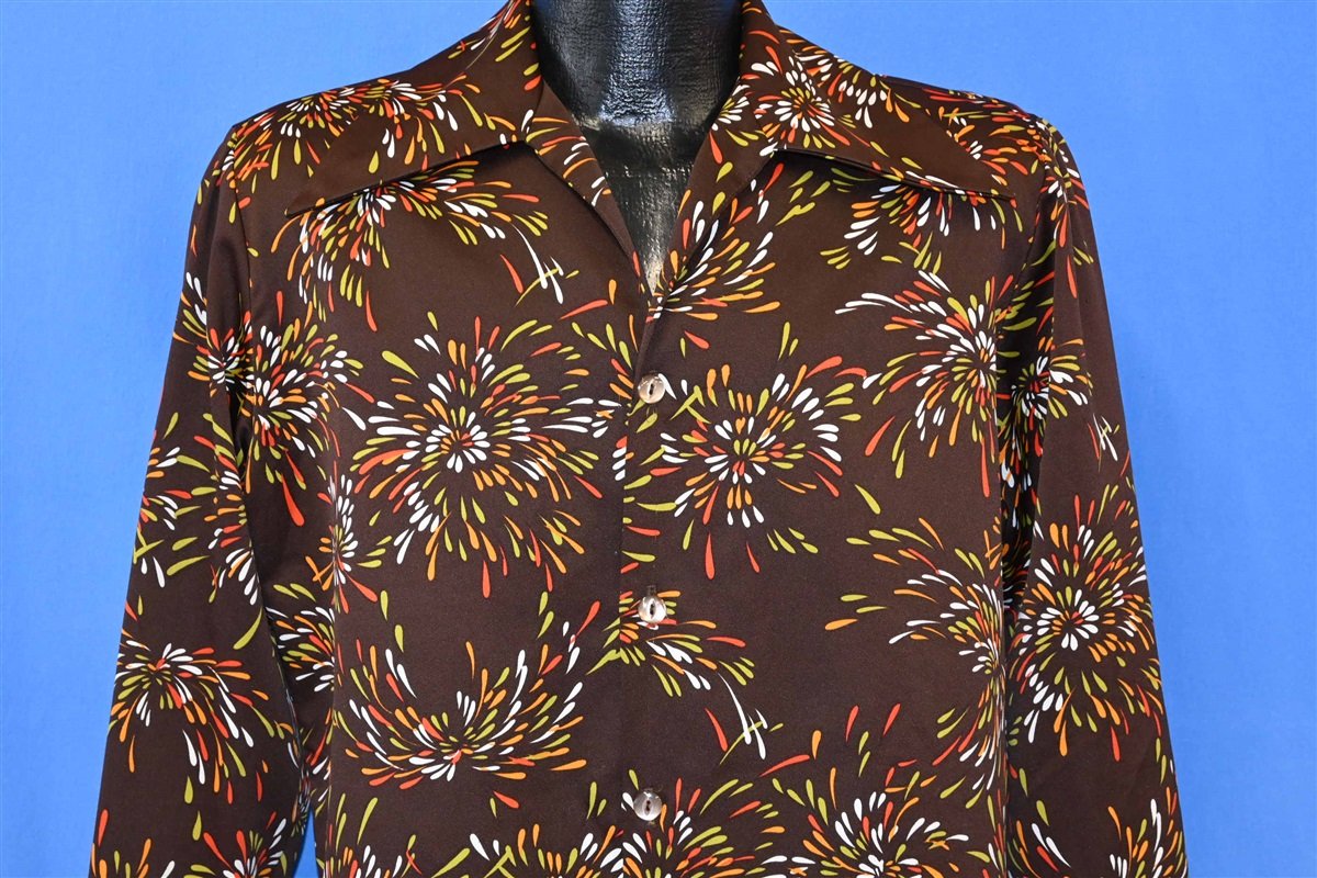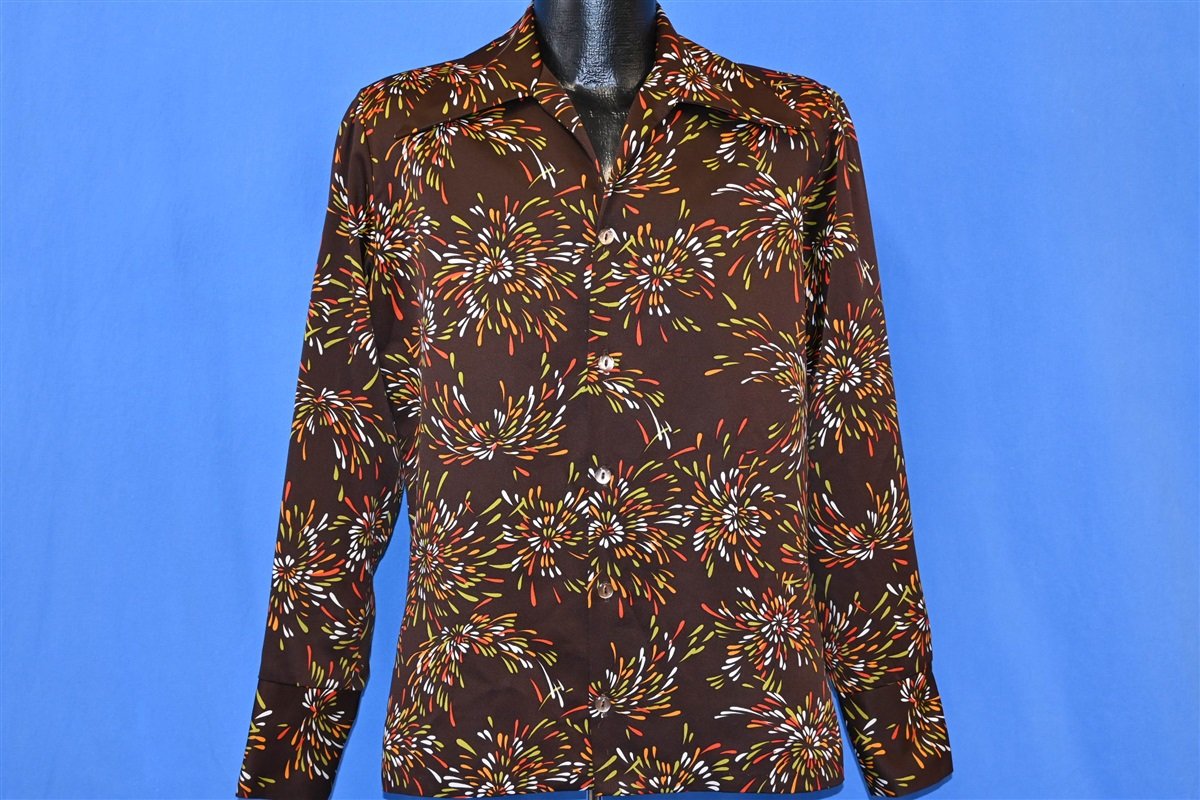 70s Disco Big Collar Brown Fireworks Shirt Medium