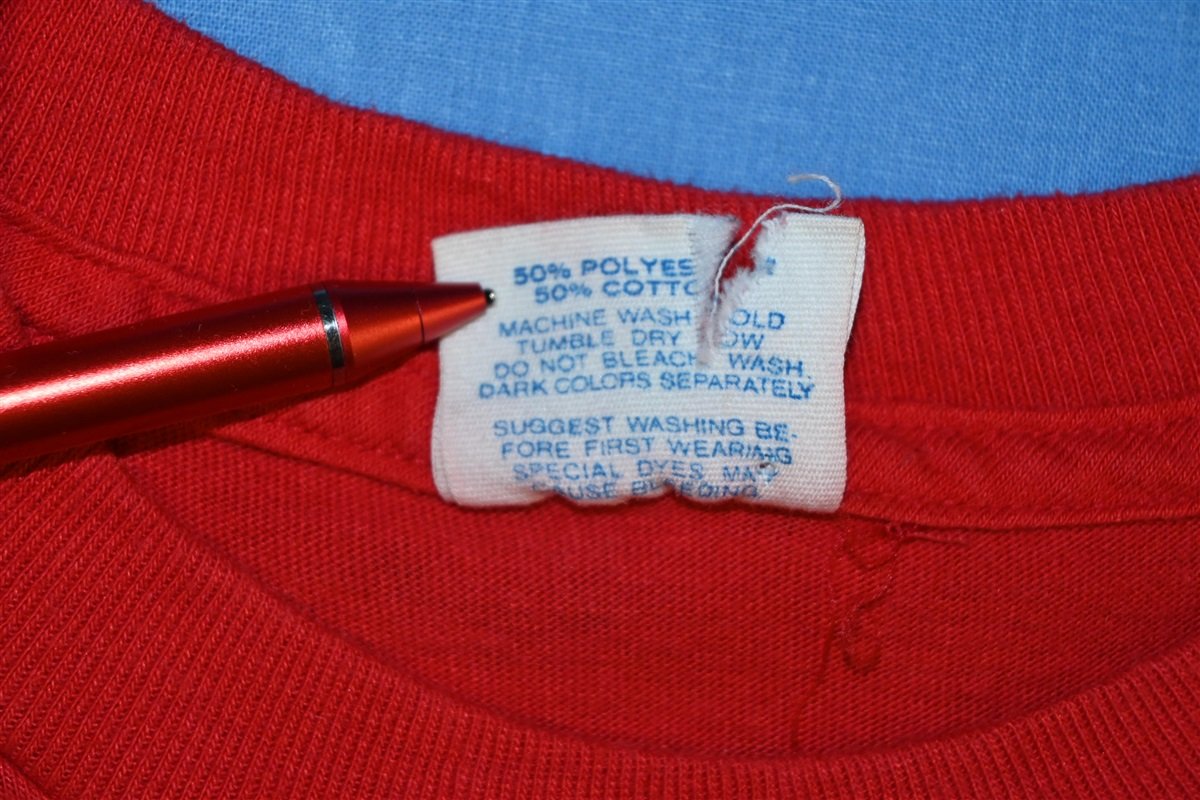 This awesome vintage tee features Adidas's famous three stripe trefoil logo on the front and back. Adidas first started using the three stripe logo in the 50s when founder Adi Dassler bought the rights to the design. He purchased the stripes from failing Finnish shoe brand, Karhu, for two bottles of whiskey and the equivalent of 1600 euros. Adidas introduced the trefoil design sometime afterward and they incorporated the stripes into this new logo. The three leaves on the trefoil represent the three continents where Adidas products were sold at the time; North America, Asia, and Europe.