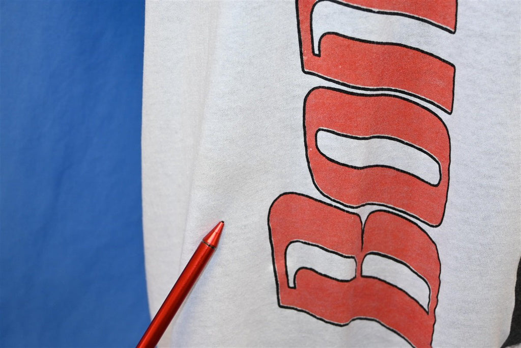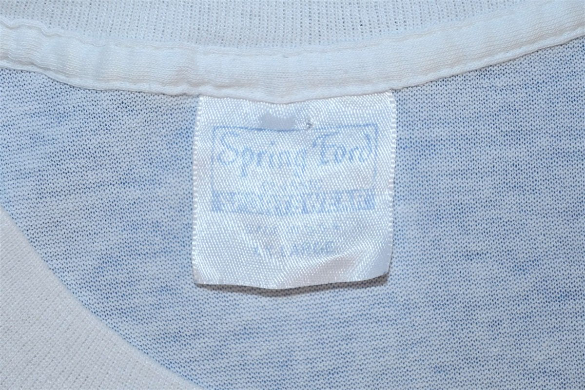 This awesome double-sided tour shirt is for the rock band Bon Jovi from the tour promoting their third studio album Slippery When Wet. The album was released by Mercury Records and produced by Bruce Fairbairn, who would also produce the band's next album New Jersey. The record featured some of Bon Jovi's most iconic songs including "You Give Love a Bad Name", "Livin' on a Prayer", and "Wanted Dead or Alive". It was a huge commercial success, peaking at the top spot on the Billboard 200, going certified 12x Platinum, and rightfully earning its place as Bon Jovi's best-selling album.