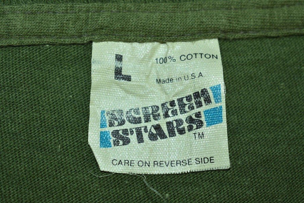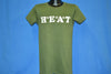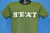 This army green 80s tee spoofs the television series, M*A*S*H, instead reading, "H*E*A*T." M*A*S*H starred Alan Alda, Wayne Rogers, McLean Stevenson, Loretta Swit, and Larry Linville. It follows a group of doctors and staff stationed at the 4077th Mobile Army Surgical Hospital in South Korea during the Korean War. Often described as a dark comedy, the show is one of the highest-rated in American television history.