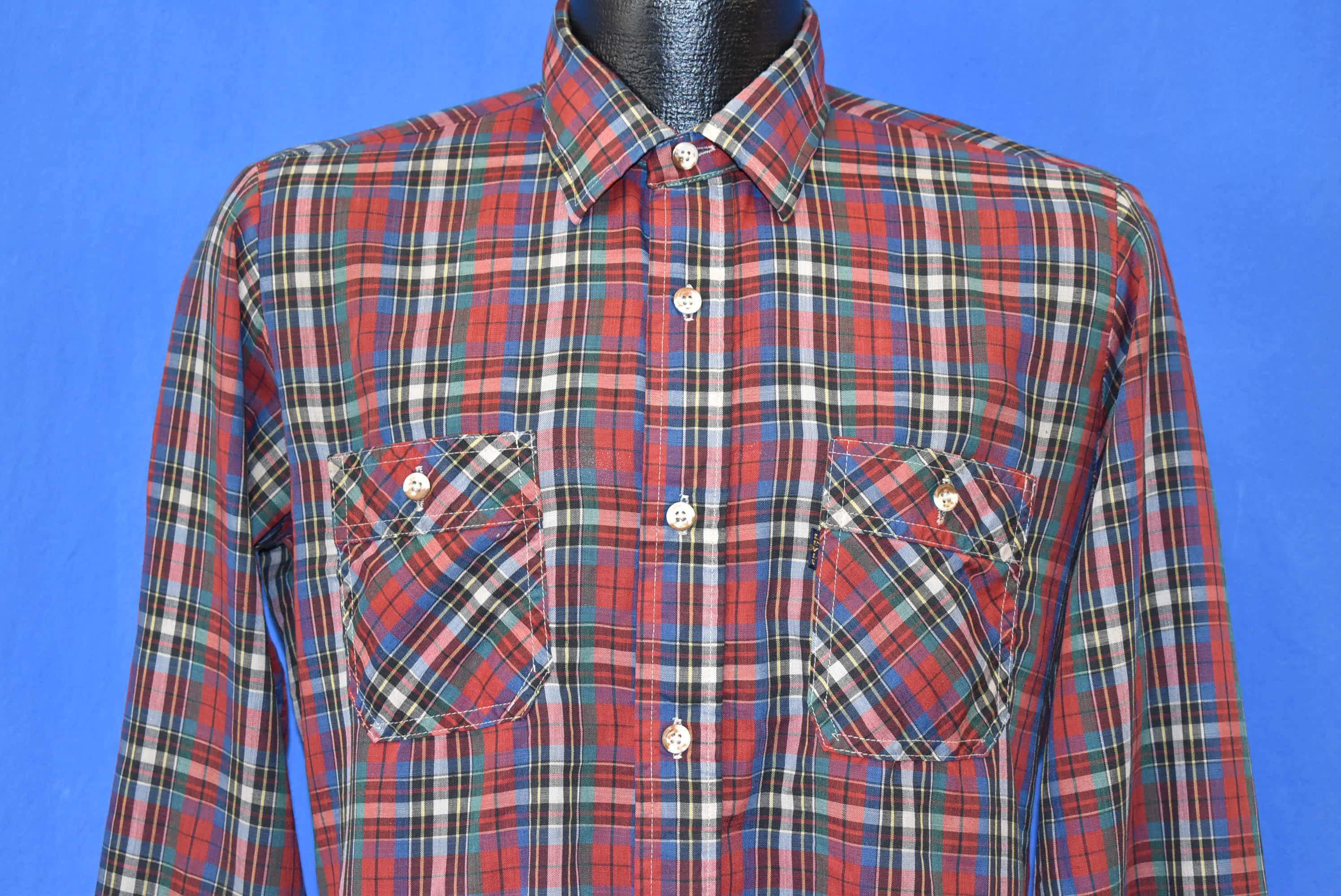 80s Levi's Plaid Tapered Fit Button Front Shirt Medium