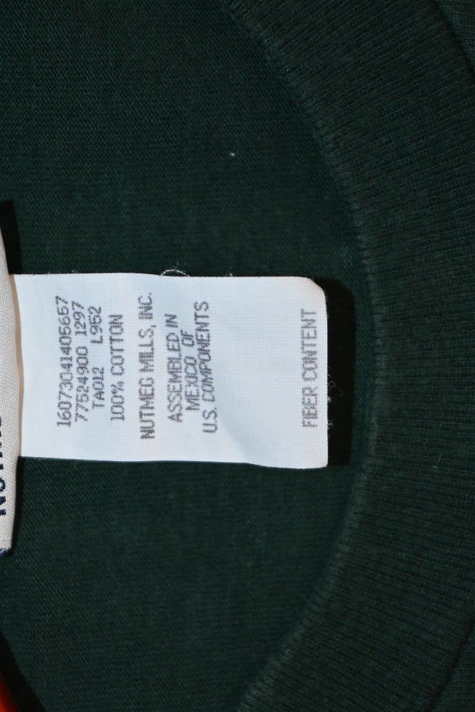 This vintage baseball tee roots for the professional team the St. Louis Cardinals, and while the team typically sports the colors red and white, this shirt is a nice rich forest green. Dating back to 1892, the Cardinals are one of the oldest and most successful baseball teams in US history. With eleven World Series titles under their belt, the only MLB team to have earned more championships than them is the New York Yankees. This shirt is from the 90s, which was the same decade that Mark McGwire broke the league's single-season home run record while playing for the team.