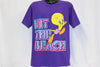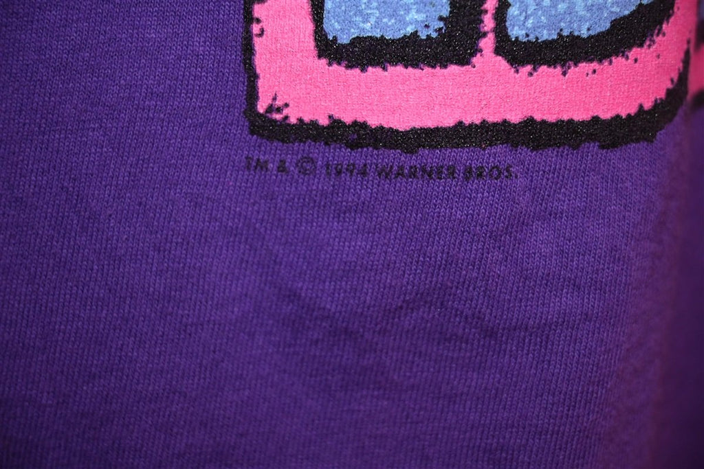 This sweet oversized tee says "hit the beach", and is perfect for a beach cover up. The graphic showcases Tweety Bird, who is one of the many beloved cartoon characters that make up the Looney Tunes. Tweety first appeared in 1942 in cartoon short called A Tale of Two Kitties. This shirt was made in the 90s, when the Looney Tunes gained a lot of attention thanks to the blockbuster movie Space Jam. The movie's tune squad starred along side some of the biggest names in the NBA at the time, including Michael Jordan, Charles Barkley, Larry Bird, Patrick Ewing and Muggsy Bogues.