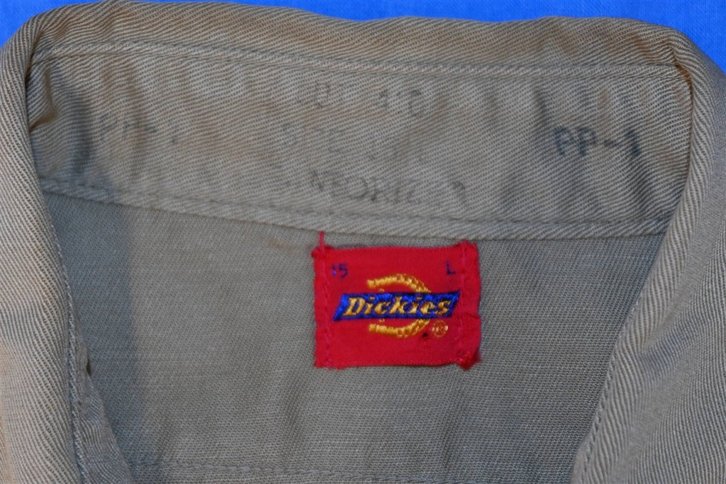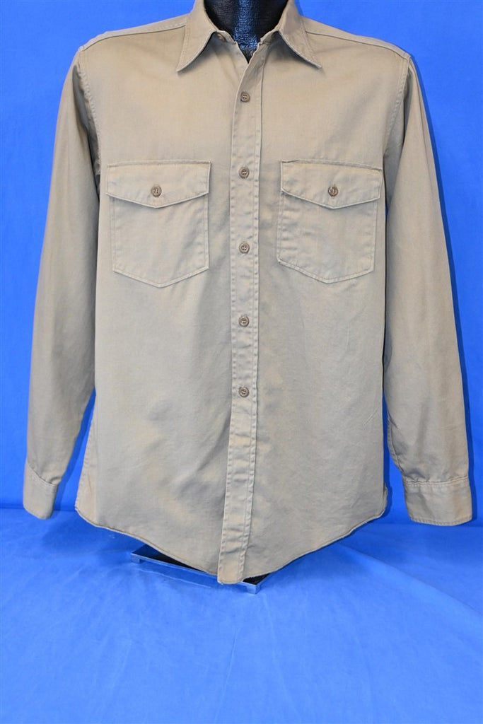 vtg 50s DICKIES RED TAG WORKWEAR MEN'S BUTTON DOWN BEIGE TAN SOLID WORK SHIRT L